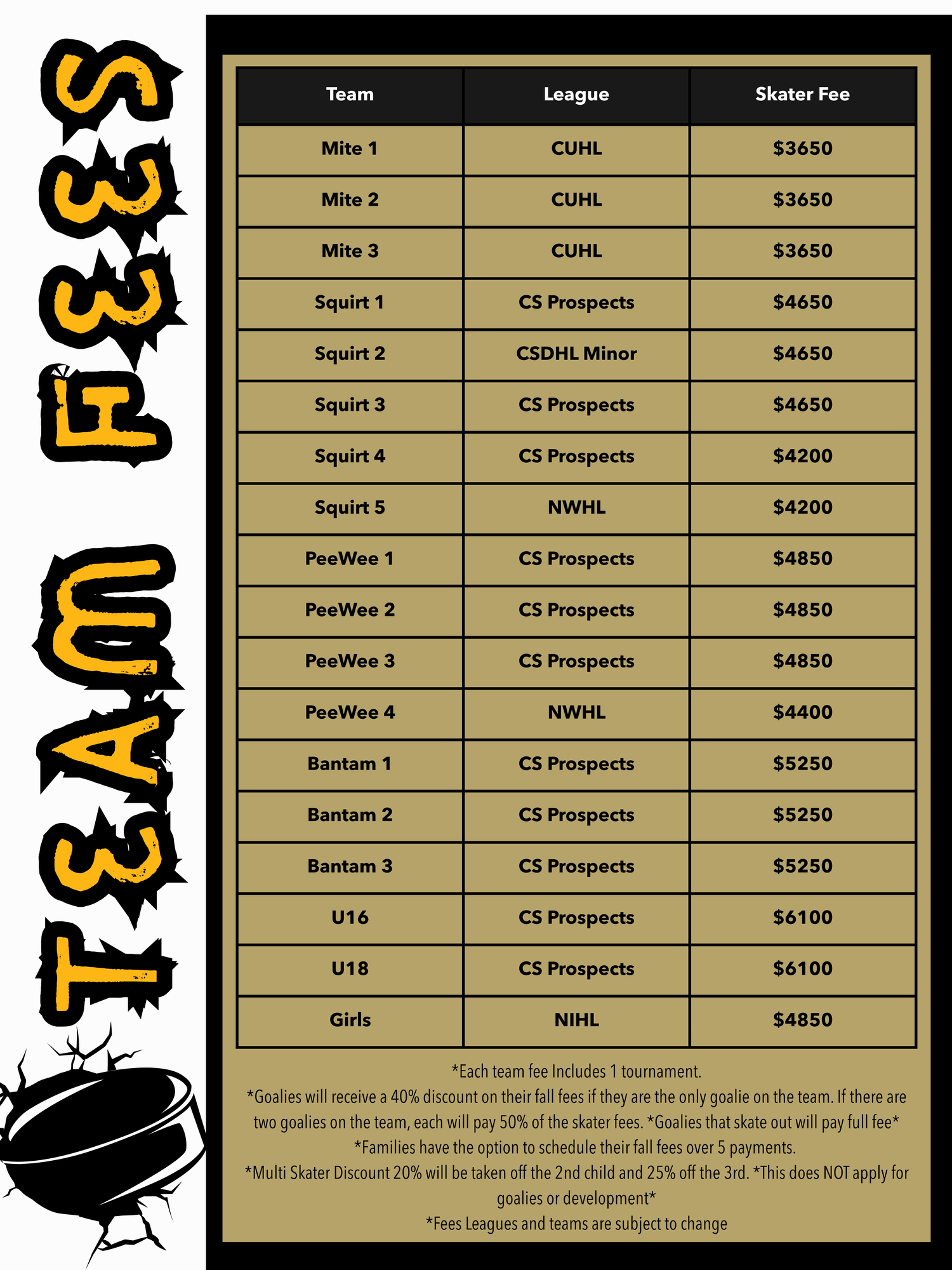 Team Fees: TBA